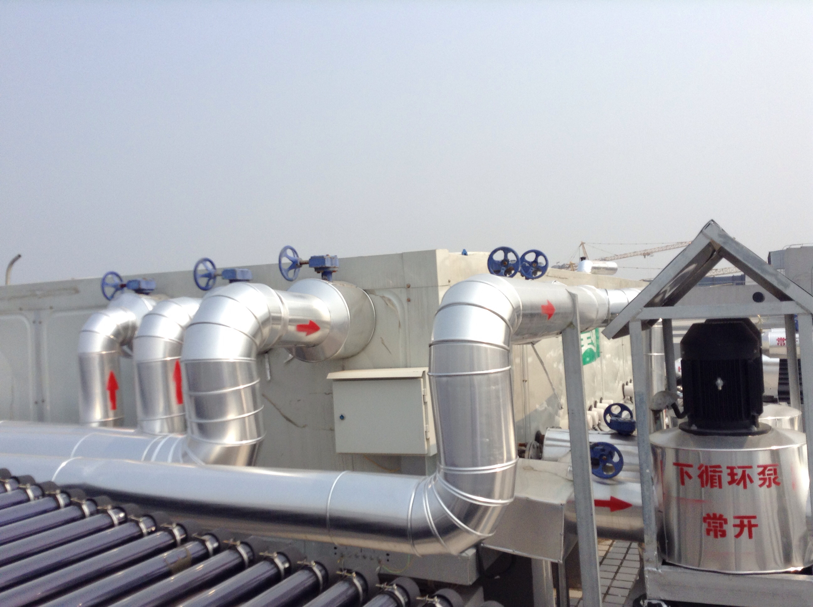 1. 本工程突破炸管、防冻等技术障碍,首先在大面积集热系统中使用普通真空管,使整体工程造价降低了40%;